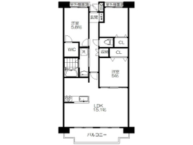 | 専有面積 | 66.11m 2 ( 19.99坪 ) | バルコニー面積 | 8.85m 2 ( 2.67坪 ) 東向き |